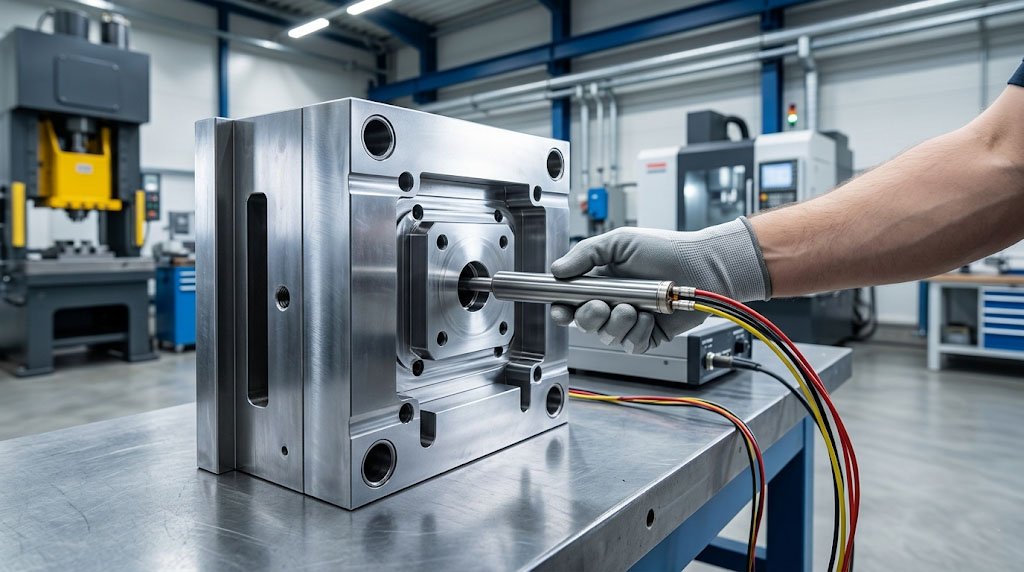 In plastic injection molding, high-watt-density cartridge heaters are inserted deep into metal molds. The heating elements must quickly and evenly transfer heat to keep the plastic resin flowing. If the MgO inside the heater is poorly compacted, the internal core temperature will spike, leading to rapid wire burnout and costly machine downtime. High-grade, densely packed MgO ensures rapid thermal transfer to the mold.